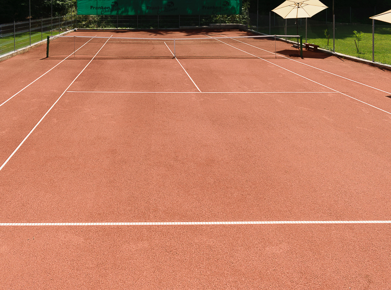 De obicei terenul de tenis de camp este format din 5 straturi, cu particule mai mari la baza, scazand pana la stratul fin de la suprafata. Primul strat la fundatia terenului de tenis de camp este alcatuit dintr-un material dur, precum piatra de rau sau refuz de ciur si are o grosime de 0.15 – 0.20 m dupa stropire si tavalugire. Dupa ce am parcurs aceasta etapa montam succesiv straturile intermediare compuse din pietris cu o grosime de pana la 6 cm si zgura neagra sau rosie necernuta, cu granulatia cuprinsa intre 25 si 80 mm. Materialul final este compus dintr-un amestec special din 75% zgura rosie (praf de caramida rosie), 5% nisip cu granulatie mai mica de 3 mm si 20% argila. Se efectueaza trasarea terenului de joc efectiv apoi se monteaza liniile de marcaj confecţionate sub forma unor benzi de material plastic de culoare alba care vor fi incastrate in sol cu ajutorul unor cleme de prindere metalice.